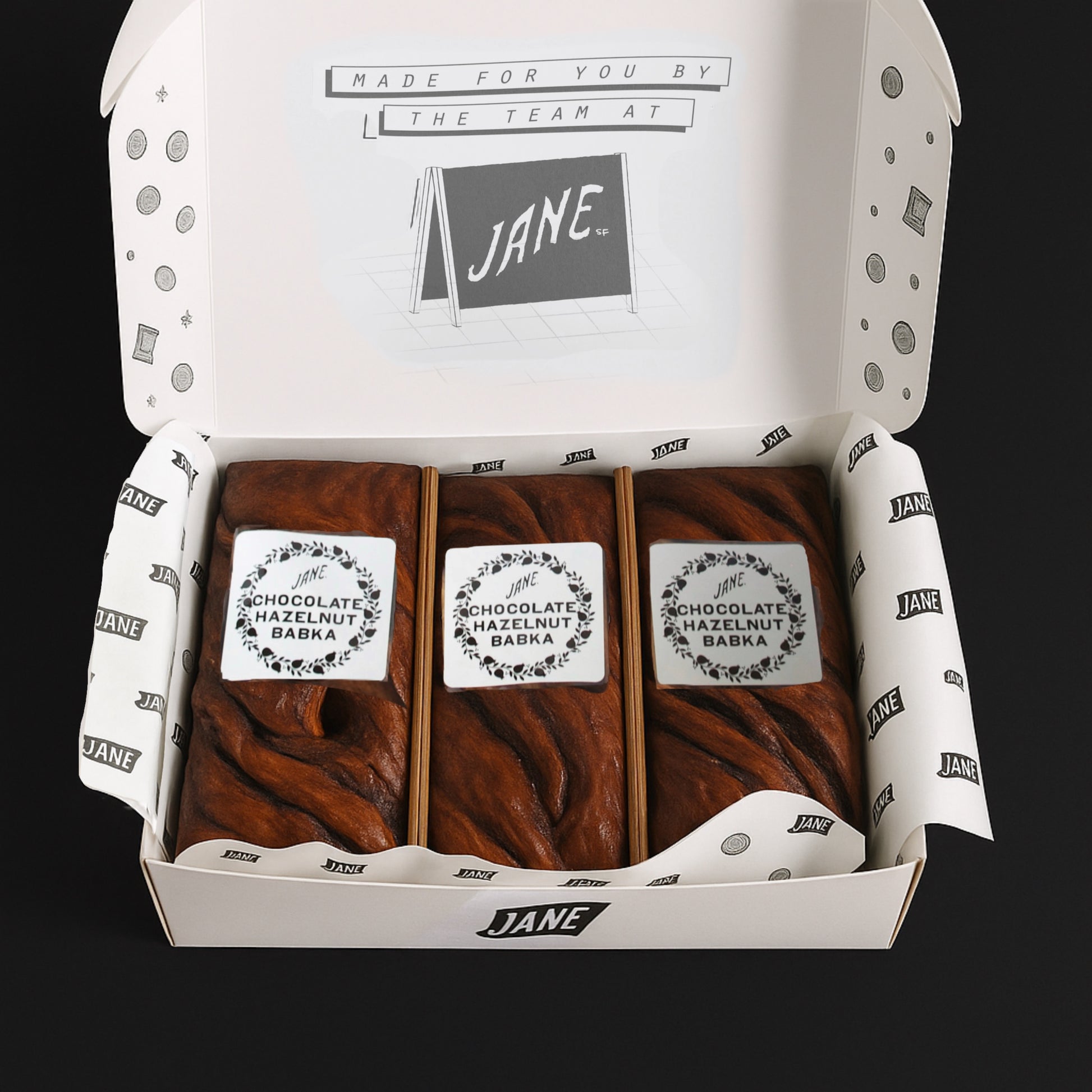 Our laminated pain au lait dough filled with nutella and chocolate chips, finished with simple syrup glaze. Eat one now. Gift one to a friend. Freeze one for later!